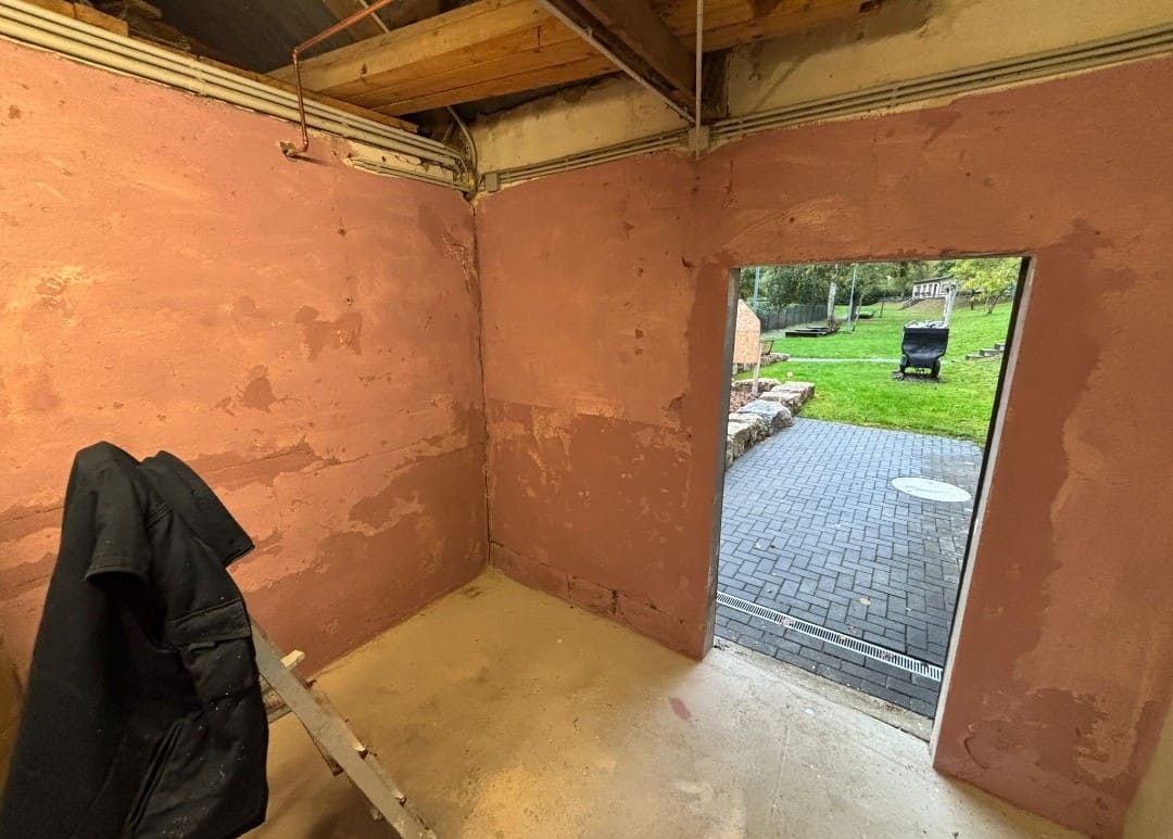 Auch in den letzten Tagen – und auch heute – wurde wieder fleißig an der Grillanlage gearbeitet. Der Außen-Bereich um den neu geschaffenen Pausen- und Proberaum wurde in einer passenden Farbe gestrichen und fügt sich nun nahtlos in das Gesamtbild ein. Die Abdeckung unter der Außentüre des Pausen- und Proberaumes wurde erneuert und der Verbindungsflur vor diesem Raum wurde weiter bearbeitet: Die Bereiche wurden freigeräumt, gereinigt, grundiert und für die weitere Bearbeitung vorbereitet.